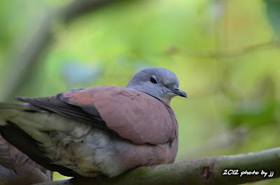 自然的生態園已成動物的樂園,定居在此的紅鳩夫婦高踞枝頭,