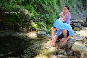 在小水池裡泡泡腳丫子就開心不已。