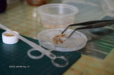鈍頭的水草夾用來餵蟲,餵食管則用來餵泡軟的飼料。