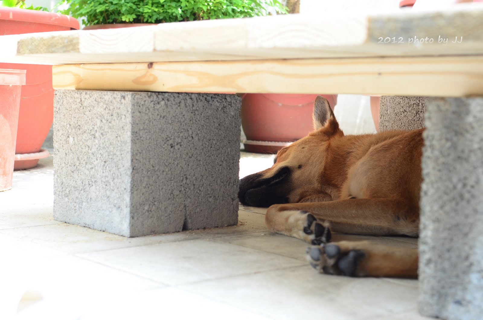 躲到木板下納涼、大睡特睡。