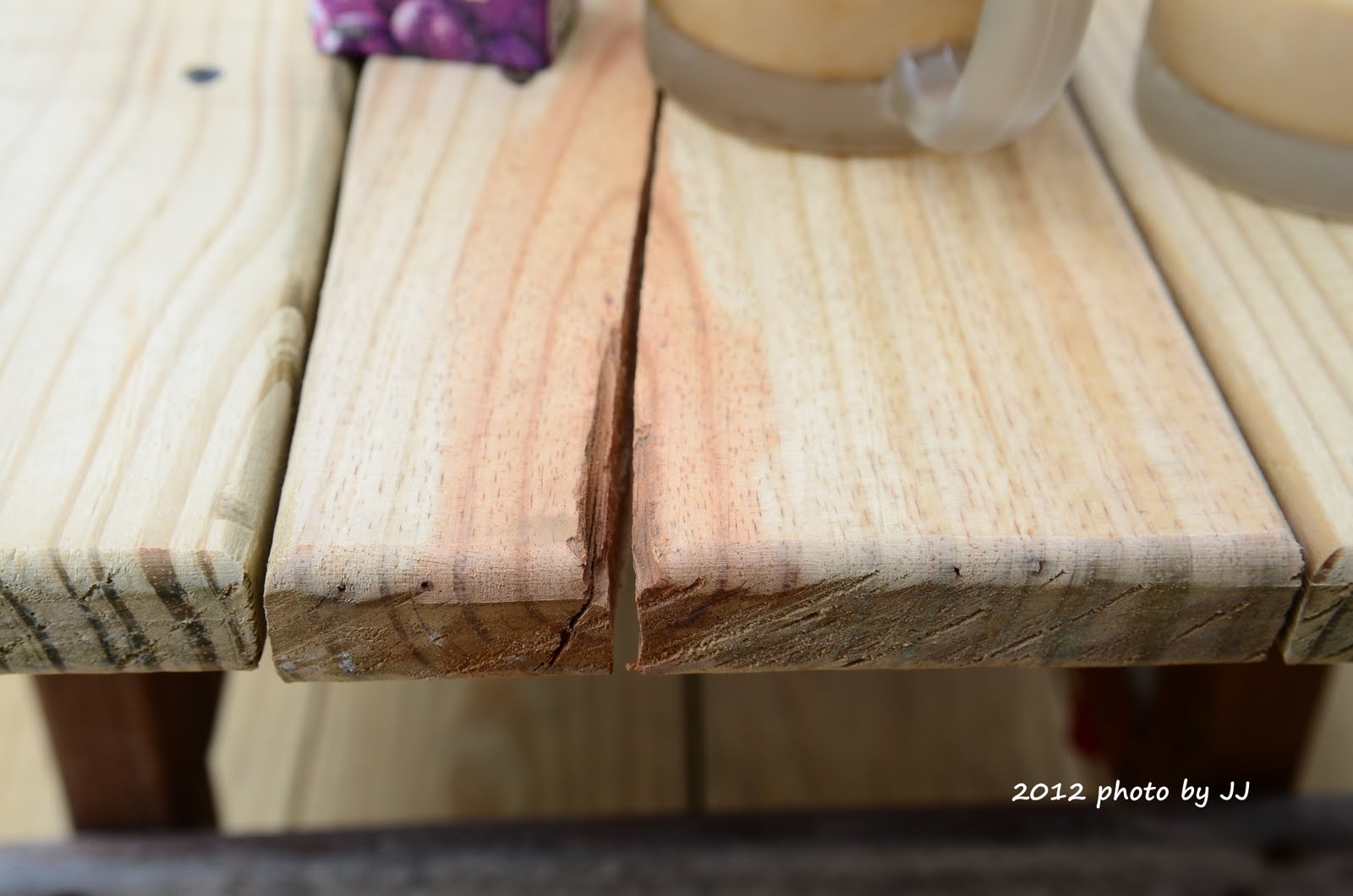 雖然木板已嚴重龜裂,但做成桌板另有不同的風味,