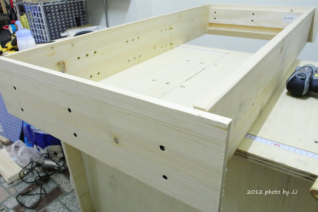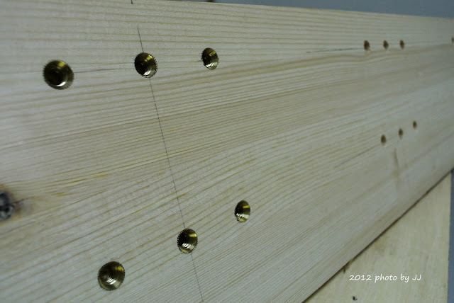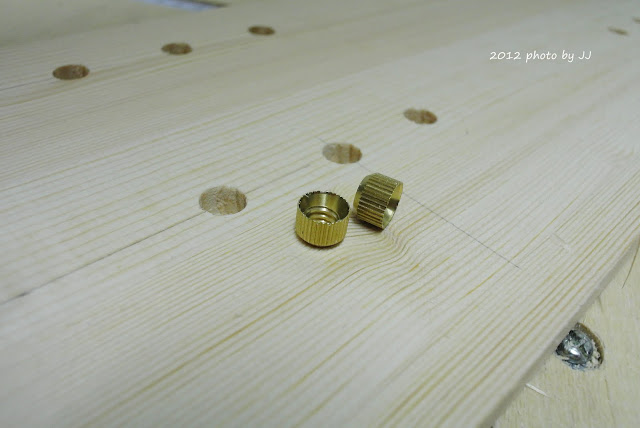 在左右側板內側,鑽好層板銅珠孔,