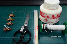 黏接棉線和尾部在竹筷上,