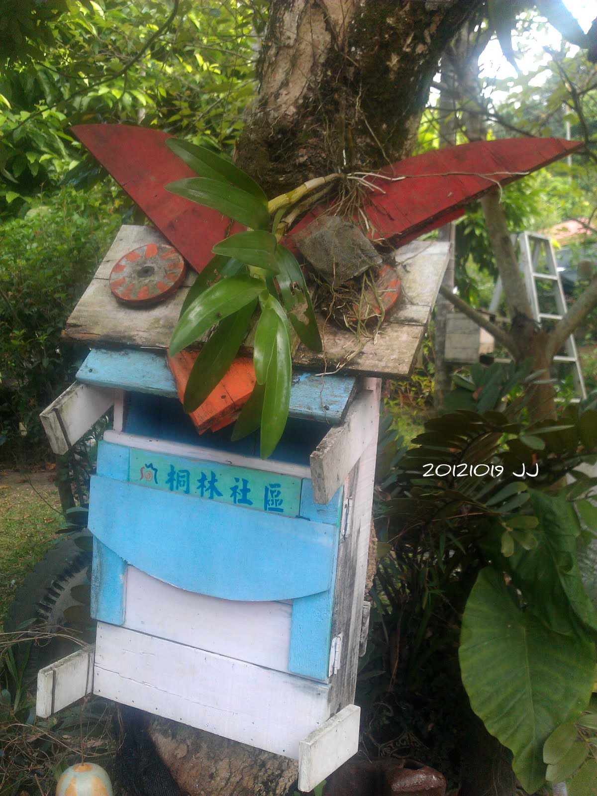 園內掛滿各式各樣的巢箱。