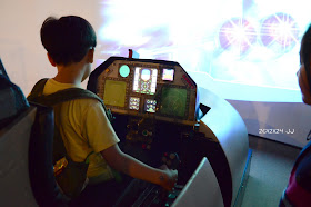 身為戰機迷,當然要坐上模擬駕駛艙,