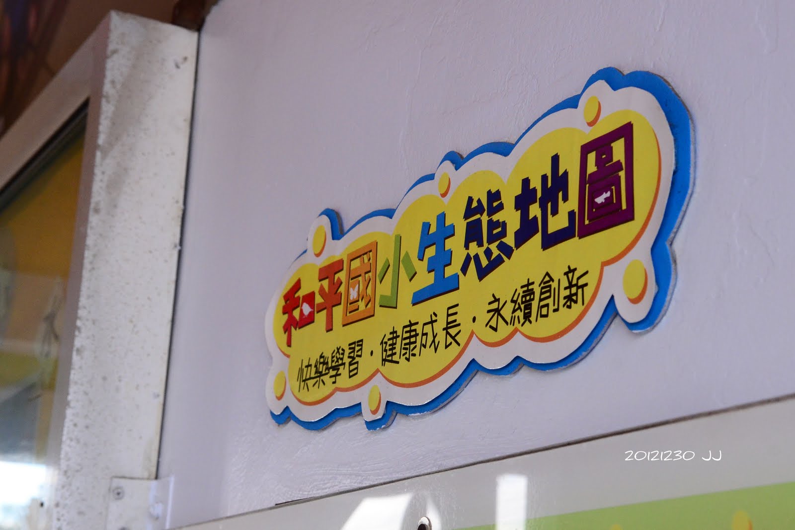 很快地瀏覽一下川堂兩側佈置的主題課程,以及校園的情境佈設,