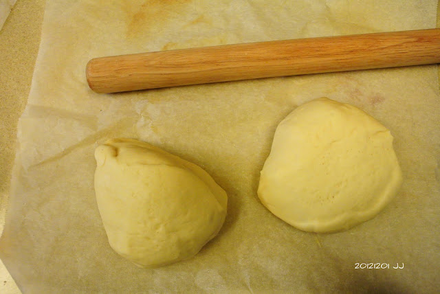 在揉好的麵糰上,塗上義大利麵醬,上頭鋪好喜愛的食材,