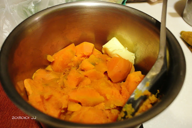 jane一口答應,俐落地將地瓜削皮、切塊、蒸熟。