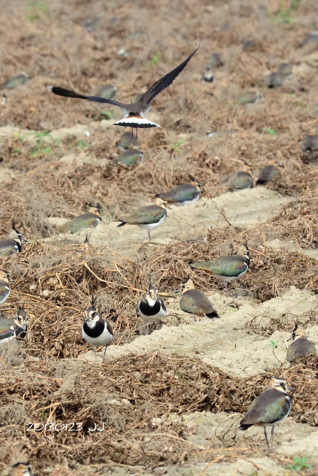今天第一次見到小辮鴴是牠們成群飛舞在空中時,