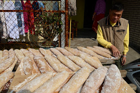 當地居民正在路旁加工製作油魚子,