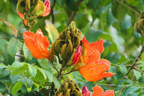 在綠意盎然的枝頭上,朵朵紅火熱情綻放。