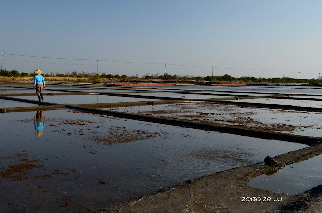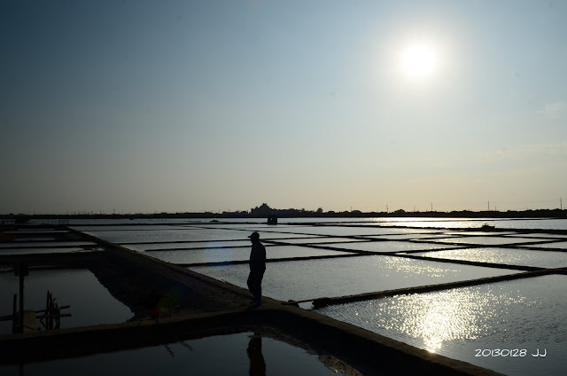 劃分成小格子的鹽田,利用陽光蒸發水份,