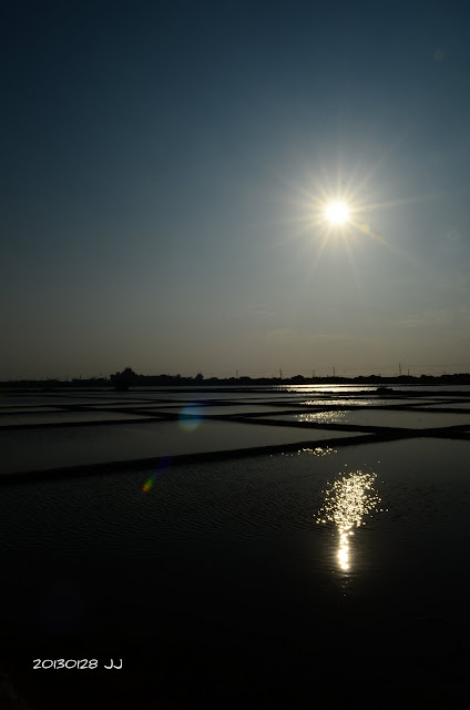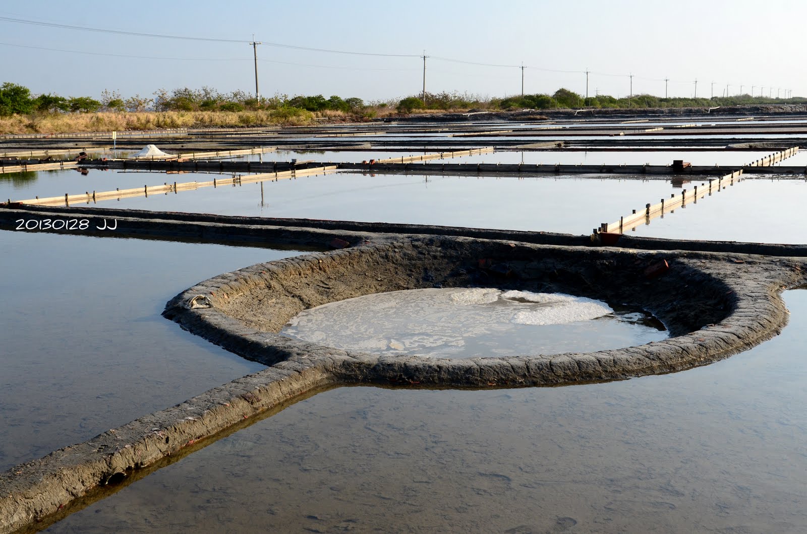 劃分成小格子的鹽田,利用陽光蒸發水份,