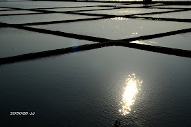 劃分成小格子的鹽田,利用陽光蒸發水份,