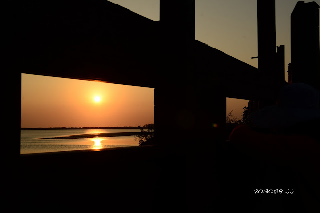 黃昏時刻,帶小豬姐弟來到曾文溪口,