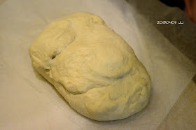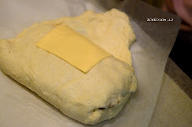 jane熟練的將起司及里肌肉包進麵糰中,