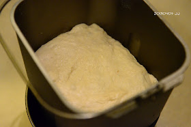 晚餐後,jane隨手把麵粉等材料丟進麵包機裡,