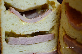 烘焙後的土司裡頭又鬆又軟,軟到都撐不住肉片,向下塌囉!