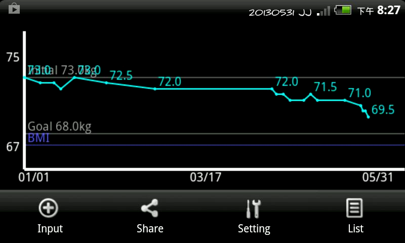五個月來,藉由手機的app幫助記錄體重,