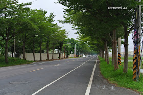 車行過斗南,轉台158線,小葉欖仁佇立延伸,