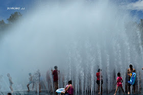 數以百計的水柱衝上高空,化成萬千水珠從天上落下,