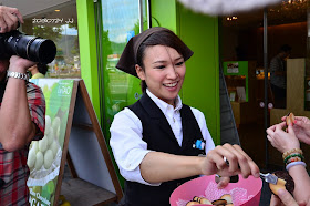 路過LeTAO洋菓鋪,親切的店員熱情地招呼我們試吃夾心餅乾,