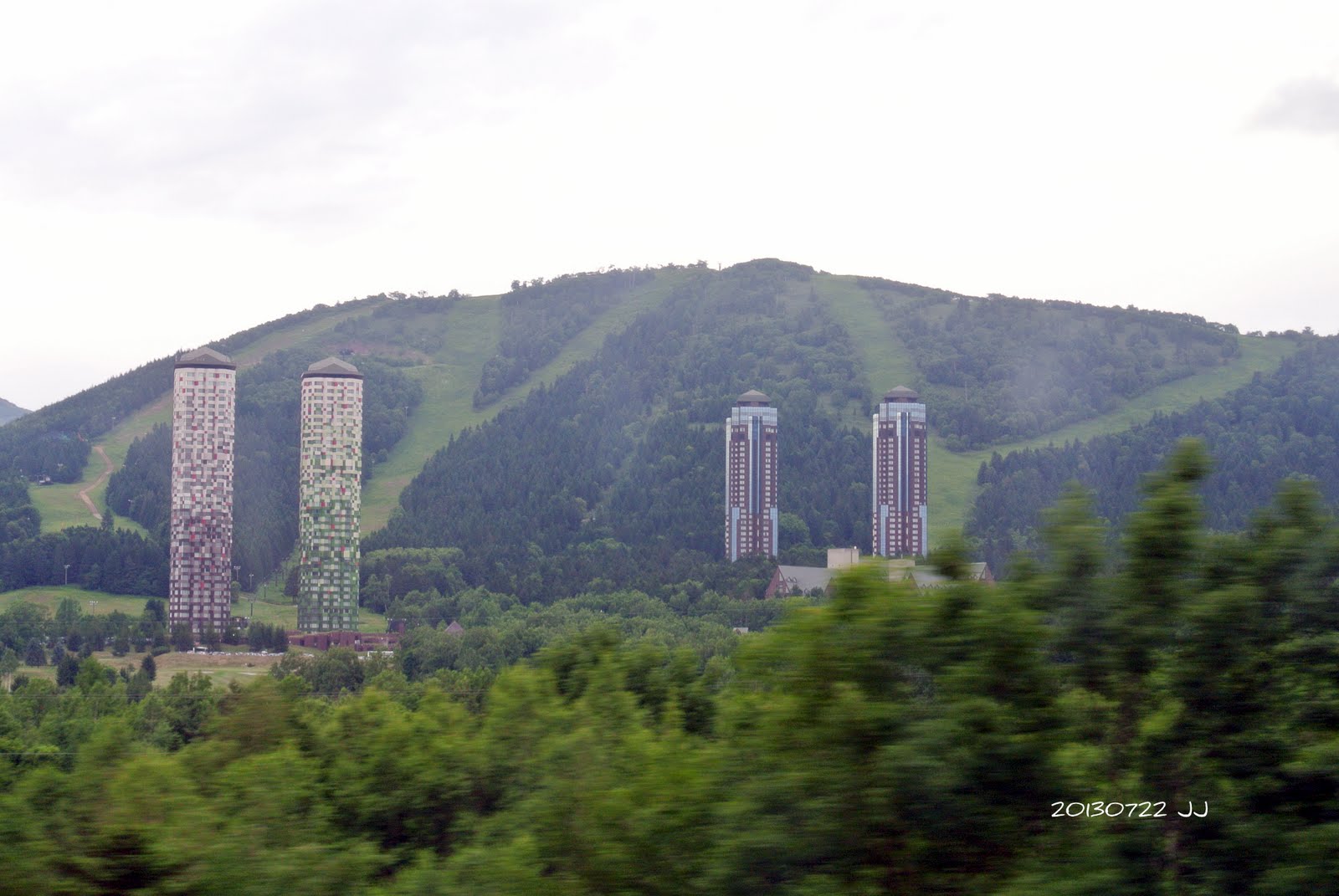 在車上拍下度假村的遠眺,共有四棟主建築,