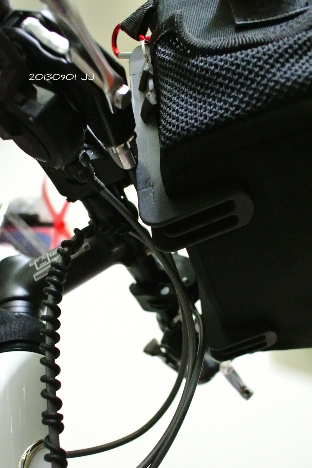 這個DIY相機包的架子,深度剛好和煞車線保持距離,