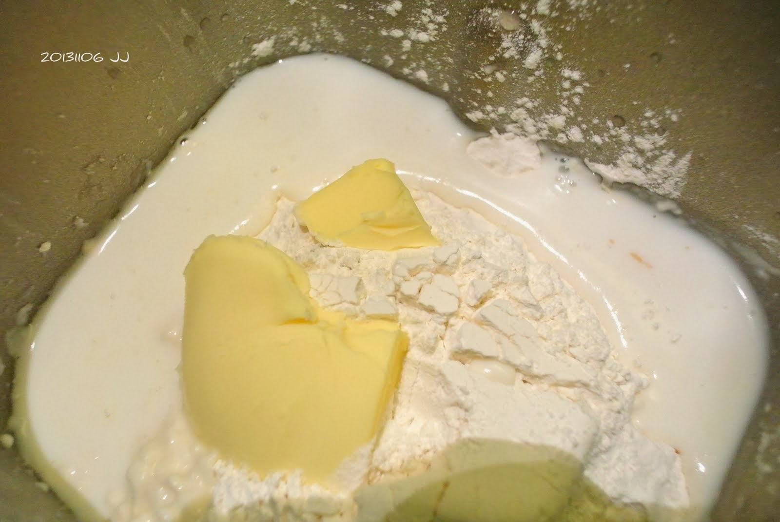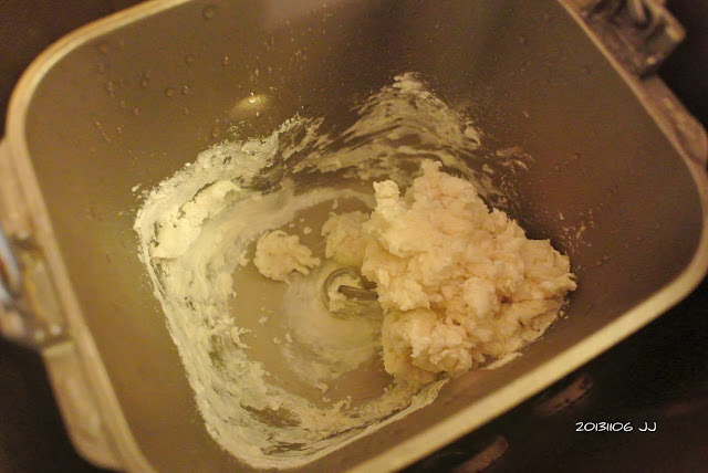 先丟進麵包機裡攪和。