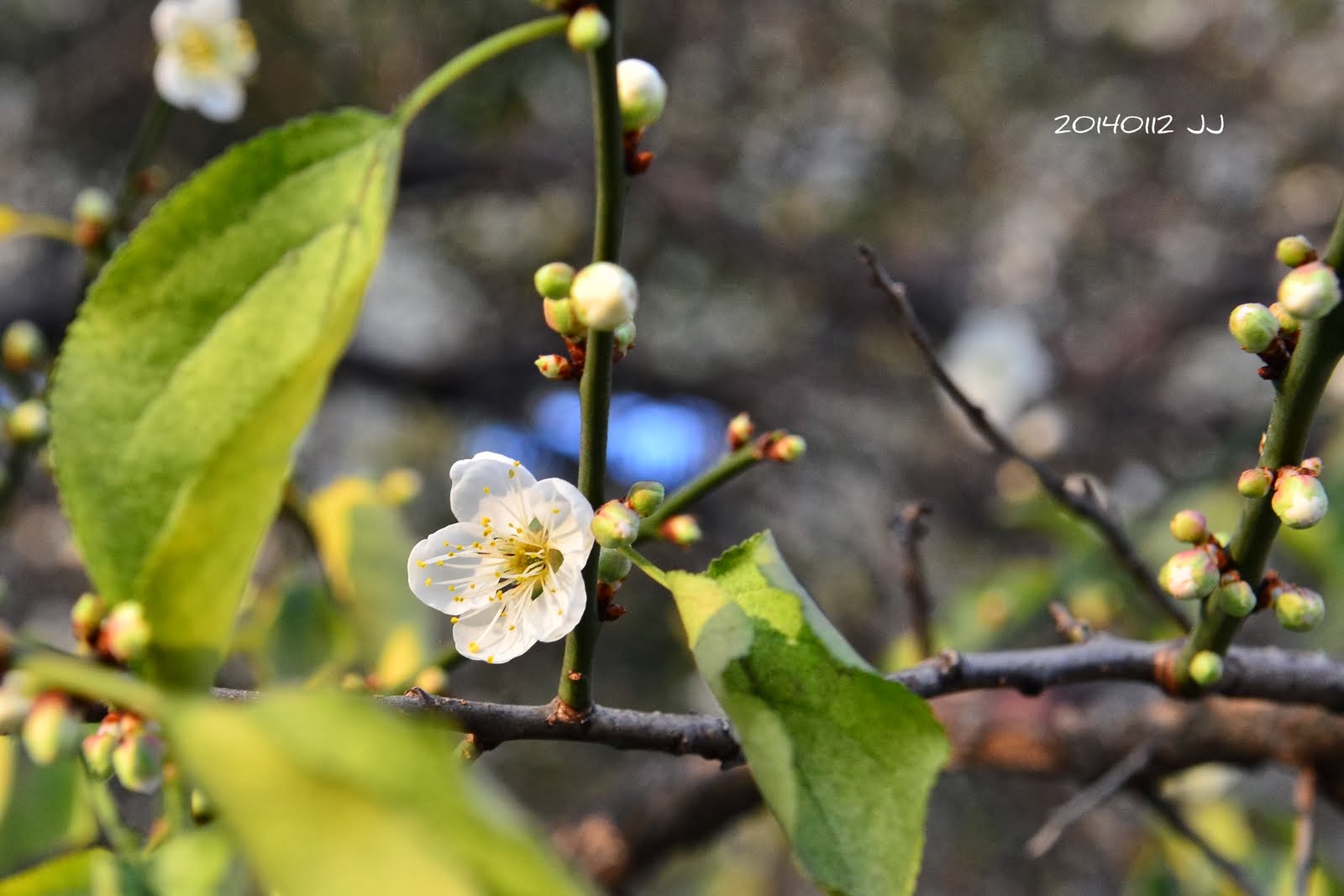 步行一百公尺就能欣賞枝頭上雪白的朵朵白梅。