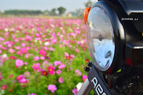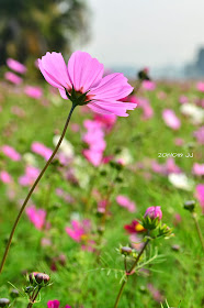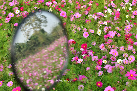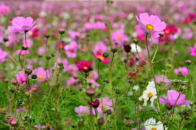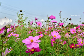 發現了幾處休耕的農田,波斯菊正怒放著,