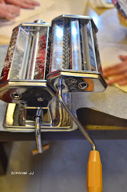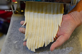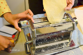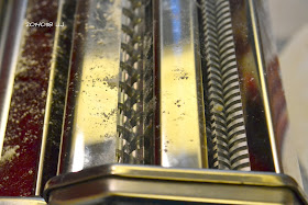 多灑了些麵粉之後,就順利地壓切出麵條了。
