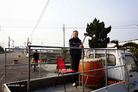 這位阿伯用的是傳統的大鼓,