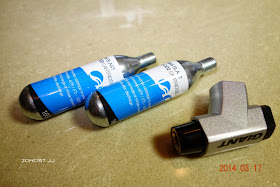 順便添購了CO2高壓氣瓶和補胎片,