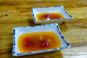 點好餐,先送來了兩碟鴨肉沾醬,