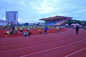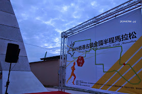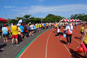 五點多抵達鹿港運動場,已有不少跑者開始準備。