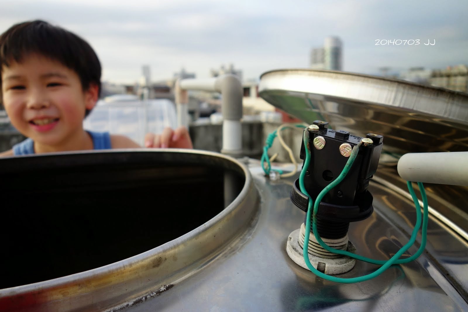 小寶知道我要上頂樓修理馬達,堅持要我等他下課才能動工,