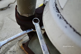 用12mm的扳手將出水口和入水口的螺絲拆除。