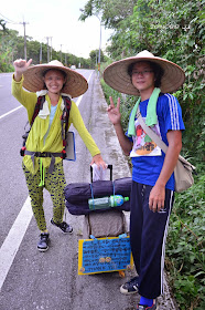 光復糖廠之前,遇到一對徒步環島的年青人,