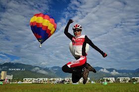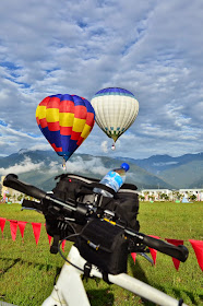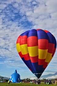 升空的氣球雖然只有兩顆,但是意外遇見熱氣球,