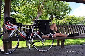 看到有涼亭可以休息,二話不說把車子牽進涼亭,