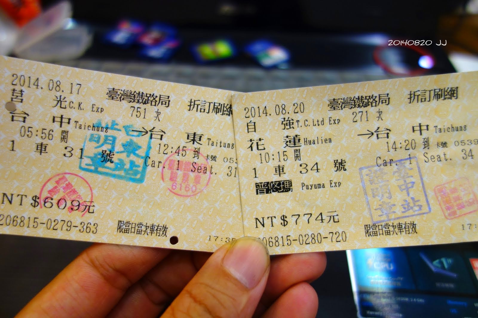 回到台中,把兩張火車票留了下來,紀念這趟單車小熱血。