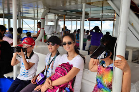 一靠近碼頭,眼尖的兒子馬上捕獲一台奇怪的船隻 ,