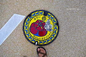 巷子裡發現一個特別的彩繪人孔蓋,很好奇它上頭的文字,