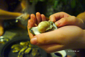 原本以為帶殼的生蚵在鐵盤中不好烤,