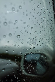 躺在車內,望著車窗外的絲絲細雨