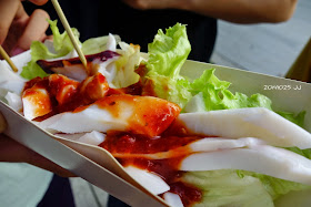 日光溫泉這攤的涼拌中卷,淋上台式五味醬,