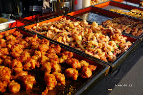 雞塊、魷魚、肉串在餘暉照耀下感覺格外可口......