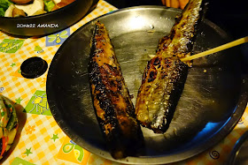 烤完秋刀魚,換烤菇菇和松坂肉,