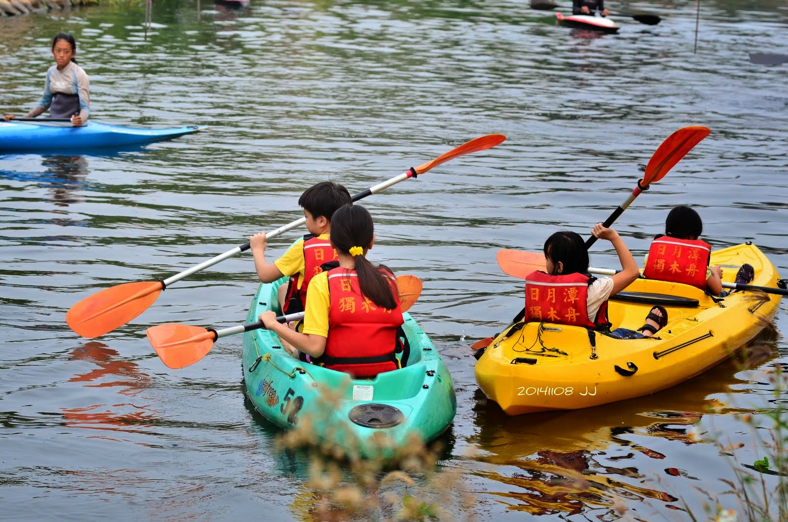 下水前,親切的教練先指導姐弟倆操槳的技巧。